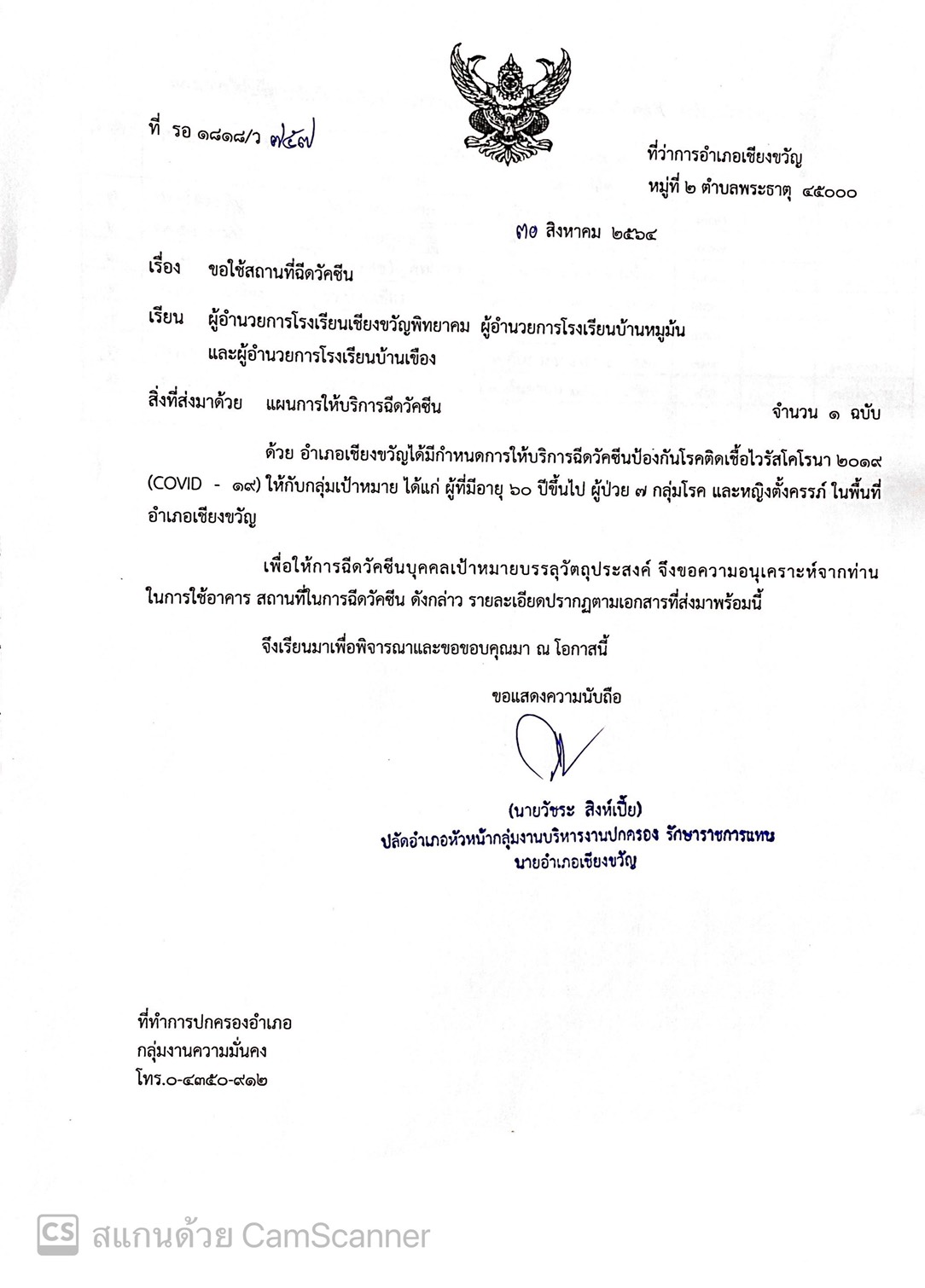 | รพ.สต.บ้านเขืองขอใช้สถานที่เตรียมฉีดวัคซีน | ดาวน์โหลด | 0.18 MB | 48 | 31 ส.ค. 64 |